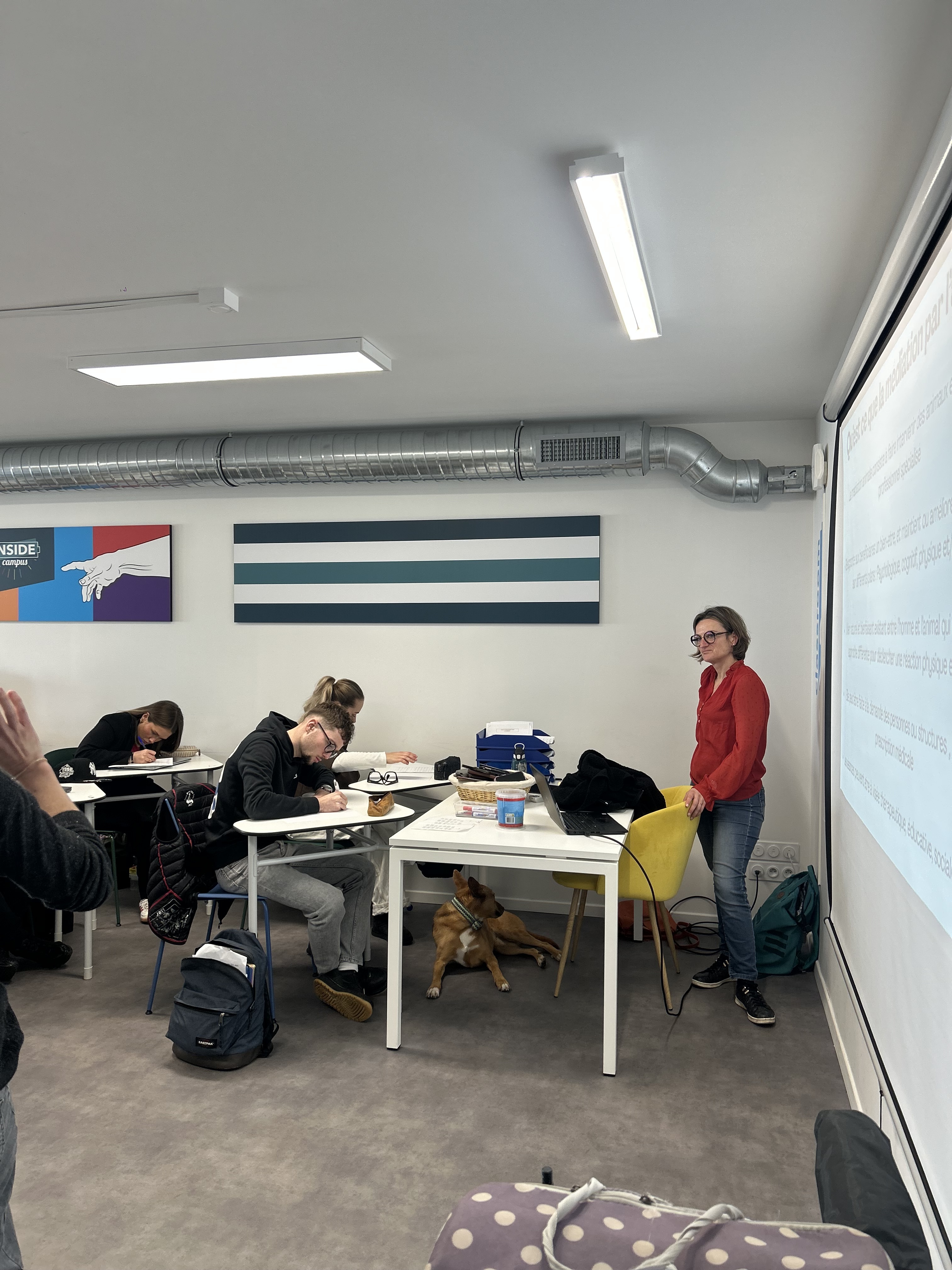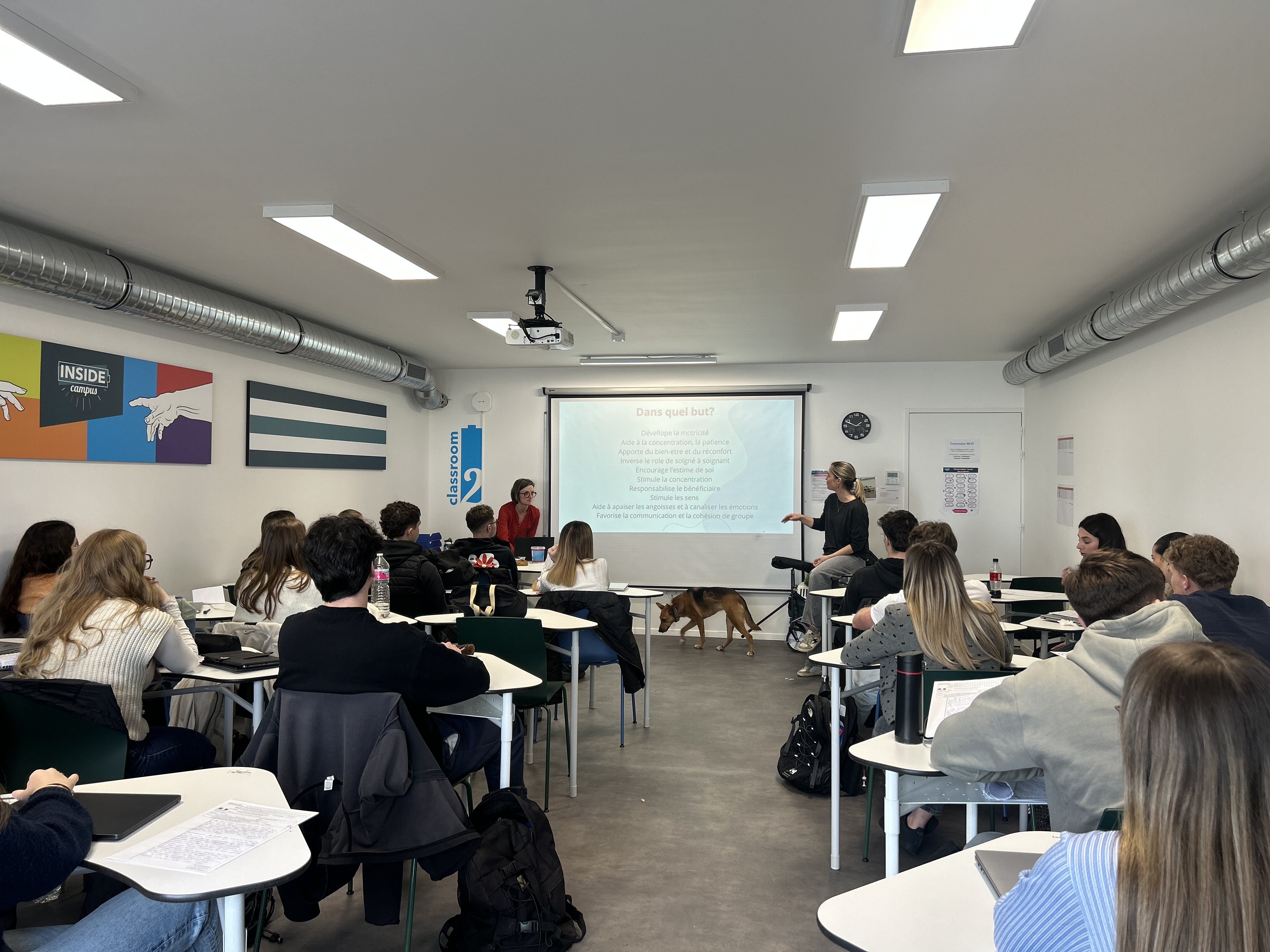Dans le cadre du thème “Les animaux et nous”, nos étudiants de BTS 2 ont accueilli l’association Les Z’Amis-Maux d’Émeraude, créée en 2021, pour découvrir la médiation par l’animal.