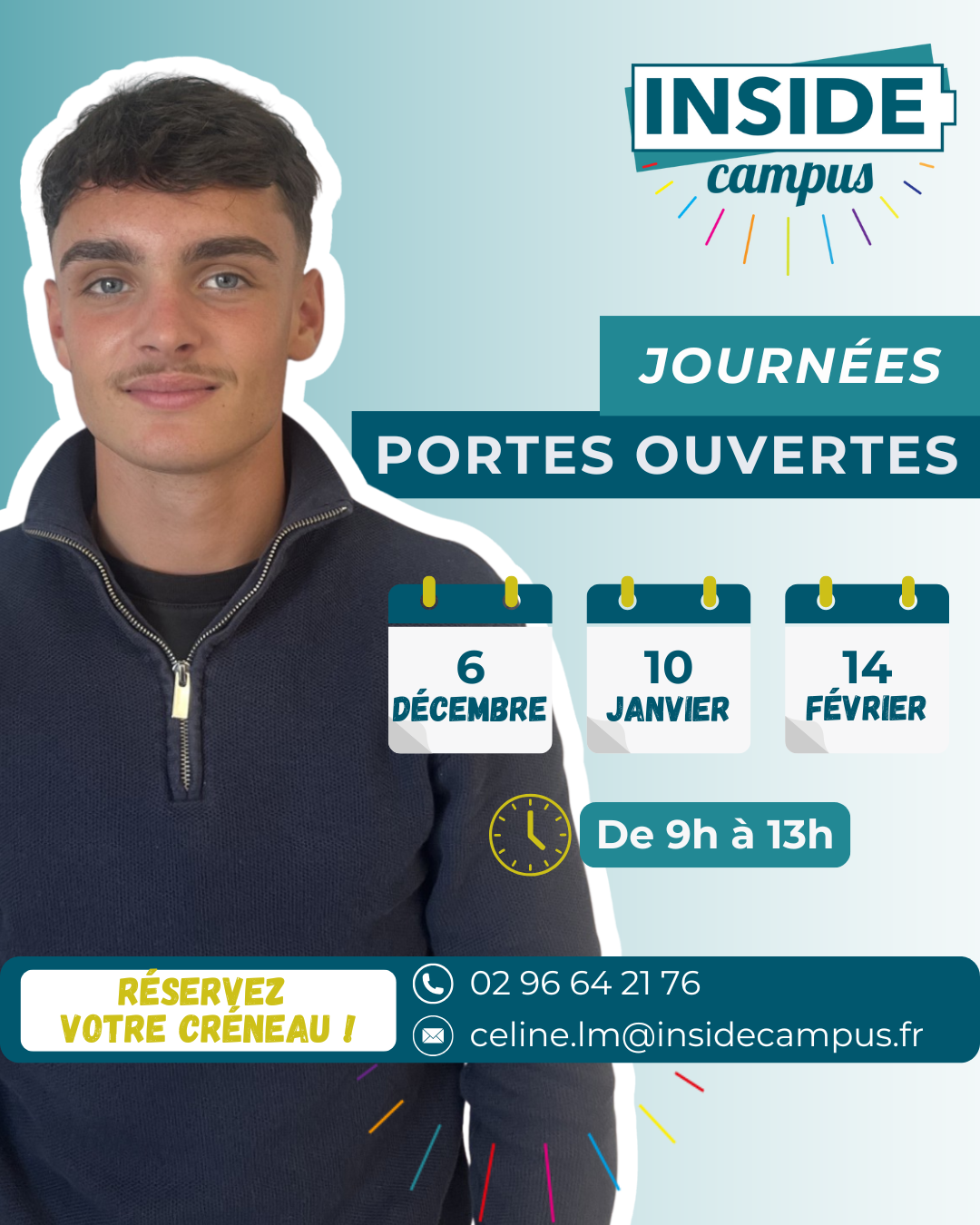 Réservation d’un créneau par mail auprès de Céline : celine.lm@insidecampus.fr